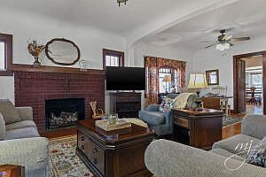 Located in a neighborhood of similar charming homes, this beautiful house has been lovingly restored. Original hardwood floors, doors, hardware, etc. New appliances such as gas stove, dishwasher, refrigerator (2019), new roof (Nov 2022) new gas fireplace, Washer/Dryer (5yrs old). The house features lots of natural light, a study/home office, large utility room, full basement with workshop area (exterior double doors to allow lawn mower inside). And, don't forget to take a peek behind the chalkboard door in the kitchen to reveal an appliance pantry! A potting shed/workshop/storage building is just steps from the house. All rugs will stay (except living room rug). Upper floor has a mini split that will convey. There's so much history in this house, call today for a showing appointment