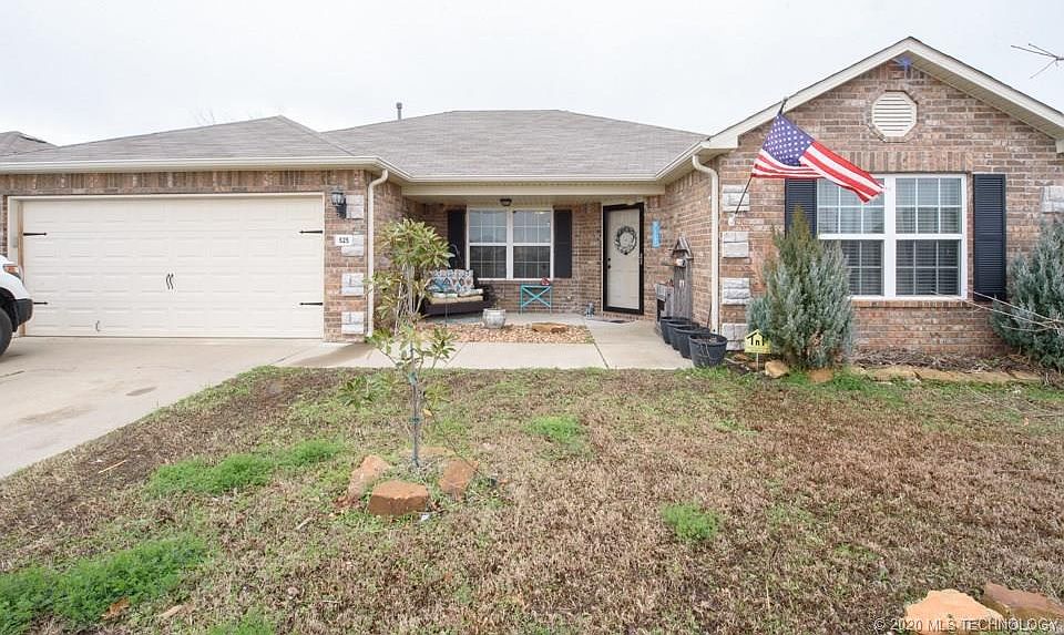 This great home in Skiatook Schools backs to a green area and features new laminate wood flooring and fresh interior paint. The split bedroom plan features the master suite on one end, two beds and a bath on another end, and a 4th bedroom or office off the foyer. The master suite has a walk-in shower with dual vanities. The kitchen is large with a pantry and floating island. The back yard is generously sized with a full privacy fence. Comes equipped with an F5 rated tornado shelter in the garage.