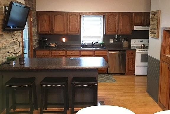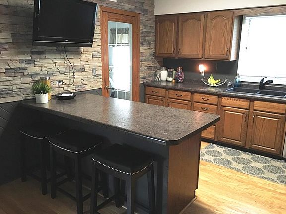 Here is a nicely done 3 bedroom home. The main level offers a beautiful kitchen with breakfast bar and stacked stone wall, charming dining room, living room, bathroom and nice sized laundry room. The upper level has 3 bedrooms. Hardwood floors throughout the main level, double detached garage and nice cement patio out back to enjoy a quiet summer evening or entertain. Nicely shaded lot.