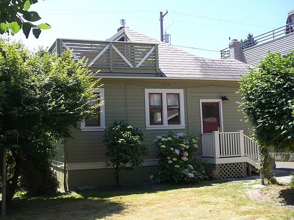 Breathtaking John's Landing home will impress from top to bottom. Renovated w/ modern upgrades & original charm, the dream kitchen includes a vaulted sitting area--the ideal space to gather & entertain. Main level bedroom w/ attached bath + upper loft w/ rooftop deck w/ Mt. Hood views. Finished basement w/ family room, 2 bedrooms, full bath & kitchenette--possible separate rental. Detached office in amazing backyard w/ covered deck, patio & fire pit. Walk to the river, park, shops & eateries. [Home Energy Score = 4. HES Report at https://rpt.greenbuildingregistry.com/hes/OR10199312]