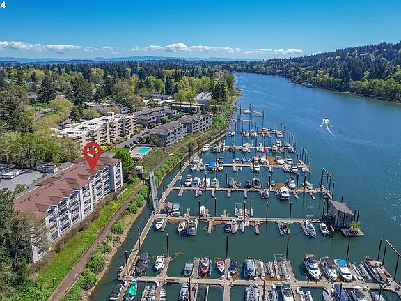 This is an incredible opportunity to live in an exceptional single level condominium located on the waterfront of the sought-after Sellwood Community. The Waverly Landing is a secured 4-level building overlooking the Willamette River and is near many darling shops and local businesses. As an owner, you can enjoy the stairs to this third level condominium or use the elevator, if more convenient; either way, access to the building from the circular driveway and the parking garage is code protected, providing security for all residents. This home is more than the updated walls that surround it as the panoramic VIEWS are more than picturesque. From the two balconies with remote awnings (one off living room and the other off the Primary Suite), you can view the Willamette River, the yacht club, and activities on the river while feeling close to nature from inside your home. Facing West toward Natural Areas, the sounds of birds and the sight of other wildlife bring serenity into this home. During the holidays, watching the Christmas boats is a treat. The Springwater Corridor is adjacent to the property with miles of walking, hiking, and outdoor enjoyment. In the home are three generous bedrooms and 3 full bathrooms. The Primary Suite has a roll-in shower and is thoughtfully updated. The hall bathroom has a shower/tub combo and the third bathroom is part of an Ensuite. Come home to this condo which is more than you might imagine. A harmonious combination of home & of lifestyle. New interior paint and light fixtures.