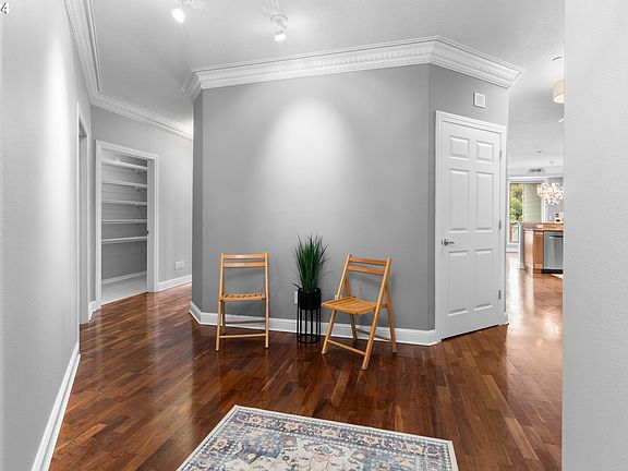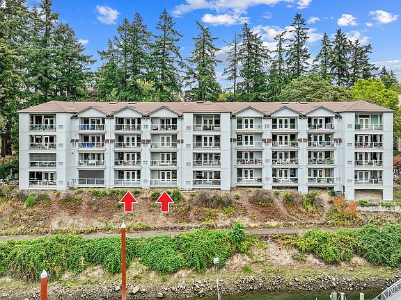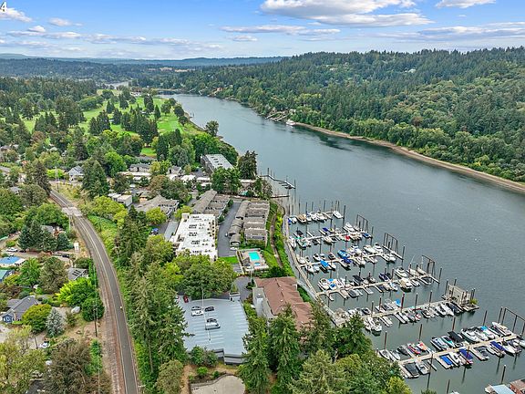 Willamette River Front Condo with Double Balconies to Enjoy the View. Ground level, accessible. Best possible view of the river in the complex, about as close as you can get. Two garage spots and lots of additional storage as well. Two luxurious bedroom suites (three total bedrooms and baths). Living room with designer lighting, updated flooring, fresh paint, and a river view with balcony access. Open modern kitchen with custom pullouts, built-in 4 tier spice rack, glass cabinetry, full slab granite tops, and more. First owners suite with fully renovated modern bathroom, expansive walk-in closet and balcony access. Don't miss the luxurious touches like the heated towel racks in both suites. Brand new, quiet and efficient 2024 heat pump installed. Updated 2021 commercial-grade water heater. Storage galore: balcony closets, kitchen walk-in pantry, stand alone shed in parking garage, plus an extra secured storage unit. Exterior of the complex has been freshly painted. Move-in-ready. Click the virtual tour link for a 3D tour and floorplan. Come on over and enjoy the view.
