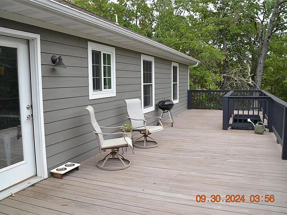 Beautiful, 4 year old, 3 bedroom 3 bath home with a 2 car attached garage and a 30x40 detached garage with full concrete pour, power and LED lighting, setting on 2 lots. Home has open floor plan with soft close cabinets, custom closet organizers, Main floor master and laundry room, quartz counter tops, some wood floors, large master suite with dual walk in closets, HUGE back deck recently painted that spans the entire back of home, and walk down to back yard that backs to the woods. 9ft pour in full, partially finished, walk-out basement with 2 windows for additional bedrooms or living space as needed. Lots of storage and charm in this "well loved" home. Custom made, decorative, exposed beams, flex pipe water lines, owned water softener, and offering access to the many lakes that are great for fishing/boating, and miles of roads for SxS rides. Golf courses and Club House/pool also available. Call today for your personal Tour !!! Seller is offering a 1 year home warranty ...