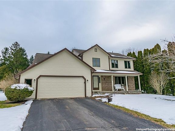 Looking For A 4 Bed 2.5 Bath Colonial In Webster?! THIS IS IT! Fantastic Curb Appeal With Freshly Painted Exterior And New Garage Doors! Spacious Main Floor Is Highlighted By Open Kitchen W/ Ample Counter Space, Modern Cabinets, Room For Eat-In & Open Concept To Cozy Family Room. Family Room Boasts Vaulted Ceilings & Floor To Ceiling Fireplace! Formal Dining Room Opens To Living Room For Extra Living & Entertaining Space! 4 Bedrooms Upstairs Including Large Master Ensuite W/ Master Bathroom & Double Closets! Continue Your Living Space Outside Through Sliders To PRIVATE BACKYARD W/ Extra Large/Freshly Painted Deck, Updated Pool & Over A Half Acre! Finished Basement Adds Extra Square Footage & Fireplace! NEW Furnace, Newer Hot Water Heater & Flooring Throughout! OPEN 3/18 from 12-1:30pm.