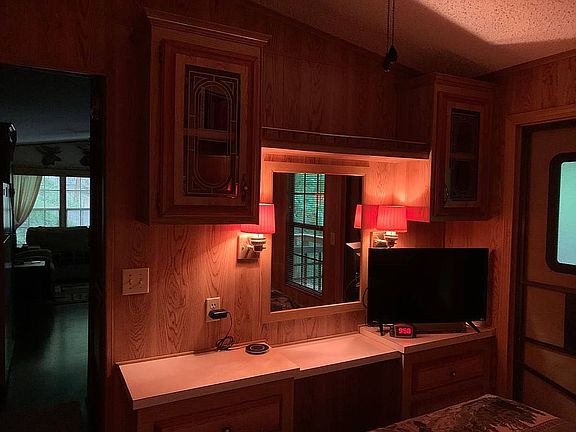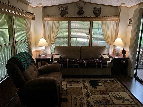 1BR / 1Ba furnished manufactured w/d in unit One bedroom one bath fully furnished including washer dryer. There is a fire pit area for roasting marshmallows and a gas barbecue grill. Sit in the hot tub while watching the game out on the12 x 34 screened in porch. All Dishes and linens included. Lot 56 at the Hideaway Campground in Bryson city. Lot rent is $2750 paid annually and includes water trash sewer and pool