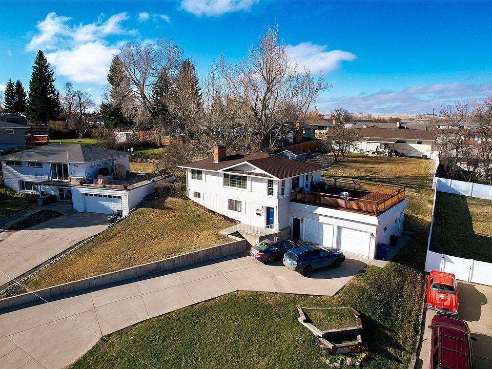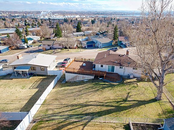 The view sets this home apart. Perfectly positioned to witness 'legendary sunrises' and overlooking the city of Great Falls and the Missouri River from the living room, or the massive newly finished wrap-around deck above the attached two car garage. Although up on the hill, you still retain a lot of great usable yard space on 1/4 acre. It's not an awkward sloping lot, rather mellow and well established. The basement opens right to the front door and has been fully finished to give two well-sized bedrooms and a full bathroom with the additional living room. Up above, the main living room has a spectacular view with large windows next to the fireplace, and an open concept kitchen / dining with newer appliances and range hood that vents outside. Tons of parking available on the long driveway. A perfect house for entertaining and enjoyment. We can't emphasize the view enough, you have to see it in person to appreciate it! Call Leo Imperi at 406-750-9503, or your real estate professional.