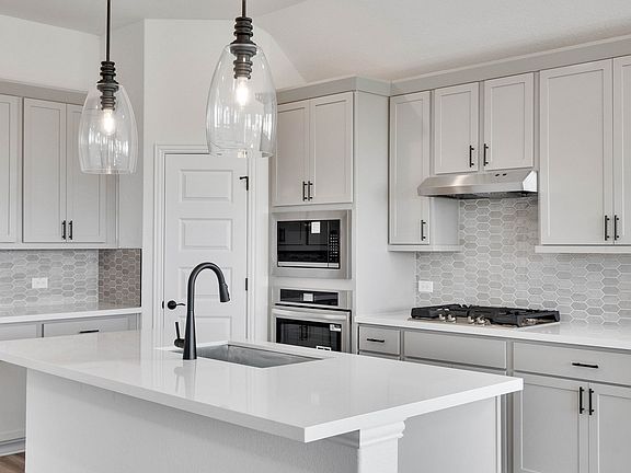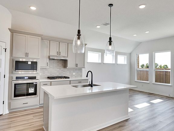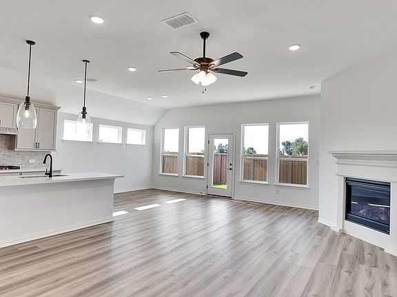 Discover the comfortable and stylish Palm floor plan, a thoughtfully designed one-story home featuring 4 bedrooms and 2 full bathrooms. The modern kitchen is equipped with built-in appliances, offering a sleek and functional space perfect for everyday cooking and entertaining family and friends.The inviting family room centers around a cozy fireplace, creating the perfect spot for relaxing evenings and social gatherings. The primary bathroom is designed with a recessed ceramic tile mud pan shower, combining elegance and practicality for your daily routine.Enjoy beautifully landscaped front and rear yards with full sprinkler and sod systems, ensuring low-maintenance, lush outdoor spaces year-round. This home balances comfort, style, and convenience in a welcoming Taylor community.