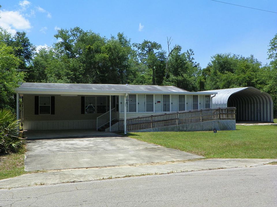 Great Privacy, No Dirt Roads to Travel Down and Move In Ready...Great country setting on 2 lots (.43 acre) with grass for family or pets to play on...2005 Homes of Merit 3BR/2BA manufactured home with Florida room(396 sq ft), 3 car carport (625 sq ft) and 1,000 sq ft metal building with concrete slab (40' x 25') which could be used as a garage, warehouse, entertainment area, or anything else you want it to be. Home comes partially furnished. This listing is not a foreclosure, short sale or bankruptcy sale so no stressful ordeal. Call on this today!