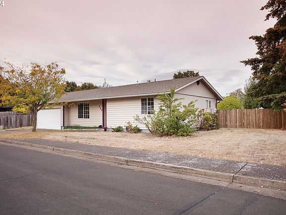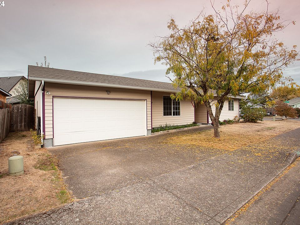 Welcome to this little one level charmer with a pop of personality! This is a very well maintained 2 bedroom 1 bath home includes a large attached garage and a 2022 roof. The Washer and Dryer set is included and located in the spacious garage. Nearby Parks and Schools. Gas furnace has been updated as well as the kitchen appliances including gas stove. This home is fully fenced with a covered area off the deck, a storage shed, planters box and various types of fruit trees. It is located on a corner lot of a quiet Culdesac. So much more potential to make this gem of a house your home!