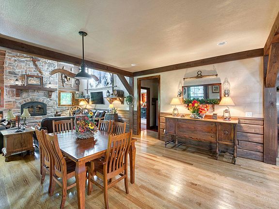 Custom built, log sided cabin tucked back in the most beautiful private setting where deer and turkey roam on 15.44 acres of partially wooded land. Lots of opportunity for front porch sitting as this one of a kind home has a wrap around porch! ICF construction which makes it very energy efficient and quiet. Fantastic open floorplan with beamed, tall ceilings and hickory floors throughout the main living area. Knotty alder cabinets in the kitchen, gas cooktop oven/stainless appliances, farmhouse sink and center island. The big walk-in pantry also serves as a safe room with concrete walls. The living room has a vaulted, wood ceiling and floor to ceiling stone, woodburning fireplace with blower that is an excellent source of heat in the winter. The primary bedroom has a door that leads to the porch. The primary bathroom is complete with soaking tub. There is a large walk-in shower in the other bathroom. You will also find the laundry/mudroom on the main floor. Upstairs are two additional bedrooms, living area and full bathroom. 48 X 50 shop plus bar and front porch! What a fantastic place to tinker, store your toys/cars and entertain in the front area! If you enjoy fishing, you'll love the stocked pond on the property that has a solar powered airator. 2/3 of the property is wooded which makes it so private and peaceful. Filtered private well. 3 freeze proof faucets on the land. Cedar soffits, 1 ft thick exterior walls. 3 ft crawlspace. 220 plug in for fifth wheel or electric car.