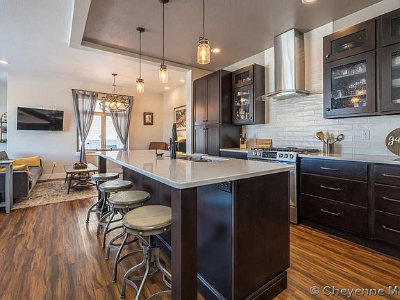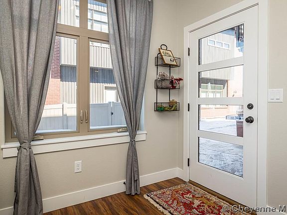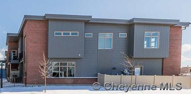 Open and spacious, with beautiful light flowing throughout this cutting edge town home. Located in Cheyenne's exciting West Edge District, downtown. Balconies & porches facing inward towards the center courtyard. 1,840 sq ft with a large 2-car garage, 2 living/family areas, gas fireplace, and large master bedroom, en-suite master bath and impressive walk in closet with it's own deck. Dog run, central A/C, and maintenance free exterior. Take advantage of this unique and one of a kind living experience.