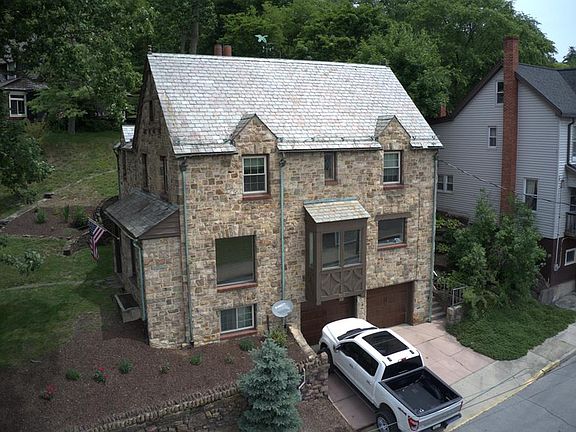 So much character in this stone, English Tudor style, 4 bdrm, 4 bath home w/2 car garage. Kitchen has Corian counters, newer appliances, lots of cabinets. Butler pantry w/hutch leads to formal DR. Spacious foyer w/curved staircase & iron railing, beautiful hardwood floors. Glass french doors to LR w/fireplace & wood accent wall. Primary bdrm has private bath with tiled shower & dbl walk-in closets., 2nd bdrm w/private staircase & bath, 3rd bdrm has dressing room w/built-in makeup vanity. Most windows are triple pane. Outside is a private patio area & stone wall surrounding back of home. Solid doors & curved archways are just a few of the things that make this home a "One of a kind"!