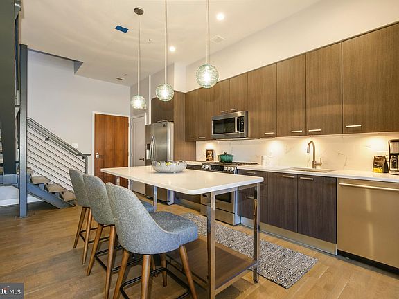 Unit 426 at 525 Water is two-level, top floor two-bedroom and den residence with two full baths, a generous terrace and two parking spaces. Natural light pours in through the floor-to-ceiling windows on each level while an open layout offers ample space for modern living. The gourmet kitchen is equipped with Bosch appliances, quartz countertops, Porcelenosa cabinets and a spacious eat-in island. Unit 426’s main level also offers a living area and secondary bedroom, full bathroom and two Juliette balconies. A sophisticated, industrial-style staircase gives way to the second level, a light-filled den leading to the primary suite with a luxurious, 4-piece bath and a large closet. Both the primary bedroom and den open to a generous outdoor terrace seamlessly blending indoor-outdoor living. Stylish upgrades to the residence include designer wallpaper, unique lighting fixtures and blackout shades throughout. This residence includes two highly sought-after, dedicated garage parking spaces. 525 Water, delivered by Hoffman & Associates in 2016, blends modern architecture with green spaces and offers ample amenities, including a concierge, fitness studio, residents’ lounge and spacious landscaped courtyard and terrace. Nestled between two park settings, 525 Water opens to the lush 3.5-acre Waterfront Park, and is located just moments from the vibrant waterfront neighborhood, The Wharf. 525 Water residents have easy access to 1 mile of waterfront promenade with chef-driven restaurants, locally owned boutiques, live music as well as local productions at Arena Stage. 525 Water is adjacent to a world-class marina, offering kayaking and paddleboard launch opportunities. Located moments from the Smithsonian museums, Waterfront Station Metro, local airports and major thoroughfares and conveniently located near The Yards, Nats Park and Audi Field, 525 Water offers unparalleled connectivity.