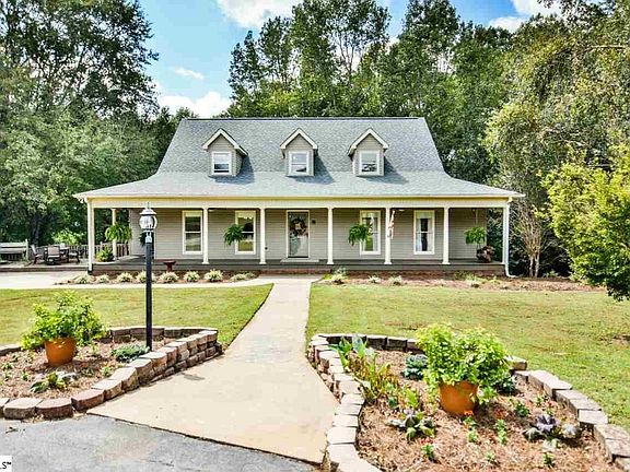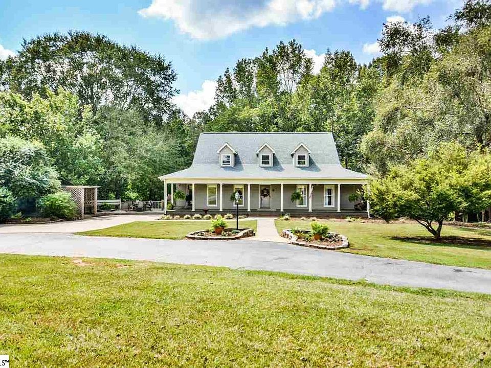Peace and Tranquility...Welcome to 525 Watson Road! This charming home nestled on 2.63 acres boasts over 3400 sq ft. As you approach the front of the home on the long driveway you are welcomed and invited in by the expansive front porch and instantly imagine yourself relaxing in a rocking chair enjoying your morning cup of coffee. As you enter the foyer of the home your eye is immediately drawn to the 2 story Great Room that features hardwood floors, expansive fireplace surrounded by detailed woodwork and picture windows that take in the natural surroundings. The enticer that takes your breath is the 20x17 kitchen with a Joanna Gaines style. Enormous cabinet space with granite counters, center island and cooktop nestled in the bricked archway. First level also features Master on Main, office surround with floor to ceiling windows. four season sunroom, dining and powder room. The second floor has expansive loft/bonus room, 2 large secondary bedrooms and bath. Need more? Basement level is home to bedroom, additional bonus room and full bath areas that are perfect if an in-law suite is needed. Garage amenities include workshop and additional storage. Multiple areas from the side deck to the backyard patio are perfect for outdoor entertaining or ending a long day by enjoying the quiet view of pond. NEW ROOF is only a month old and Newer Septic. 1.5 miles from golf, 4.5 miles from general conveniences and close drive to Downtown Greenville. Are you looking for your own immaculate acres that boast serenity with privacy and nature and yet close to dining and shopping...WELCOME HOME!