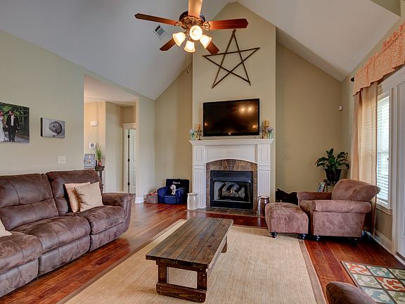 3 Bedroom ranch with bonus on almost an acre!!! Fully fenced back yard and mature trees offer plenty of privacy. This home offers a coverered porch perfect for rocking chairs, living room with wood flooring, vaulted ceiling, natural light, and fireplace. Open concept kitchen showcases SS appliances, two tiered island with tons of counter space and cabinet storage, and a breakfast nook with bay window. Enjoy the primary suite w. remodeled bathroom incl. tile shower, soaking tub, and WIC
