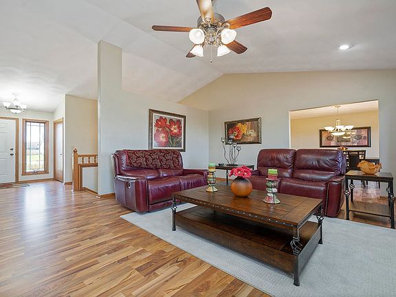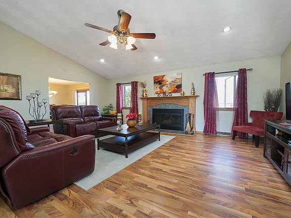 This meticulously taken care of ranch home in Stillman Valley has had one owner and has 3 BR, 2BA, & a 3 car garage. Foyer opens to great room with cathedral ceiling and woodburning fireplace with tile & oak surround. This wraps around to DR with slider to huge deck w/ metal rails (stained in ’20) overlooking the spacious fenced (’20) in yard with 2 apple & 1 pear tree. Back inside we move to the kitchen with eat-in dinette. All appliances are black with the gas stove & dishwasher being new in ’21. First floor laundry room (washer/dryer stay ’21) with laundry sink is right off the garage entrance. Main level has newer wood laminate flooring (’19). Large master bedroom has an en suite bathroom with double sink, walk-in closet and separate toilet. Carpet in bedrooms and stairs was new in 19’-22’. Open stairway to LL which has partial exposure and is enormous with a game space, 2 built-in seating areas/cabinets to seat 8, and a family room - all with tile flooring and electric baseboard heat. Aprilaire (’21), sump pump, rough in bath in LL, ample storage area.