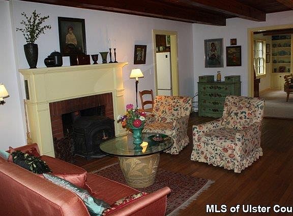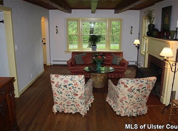 Serene, private country home is an ideal weekend retreat yet a convenient jumping off point for all the physical and cultural activities the Hudson Valley has to offer. Perfect for executive or creative clientele. The charm and warmth of a farmhouse but with one-level living. Hardwood floors, beamed ceilings, LR and DR each have own fireplace. Enjoy morning coffee, or dining al fresco on beautifully planted stone patio off the DR.