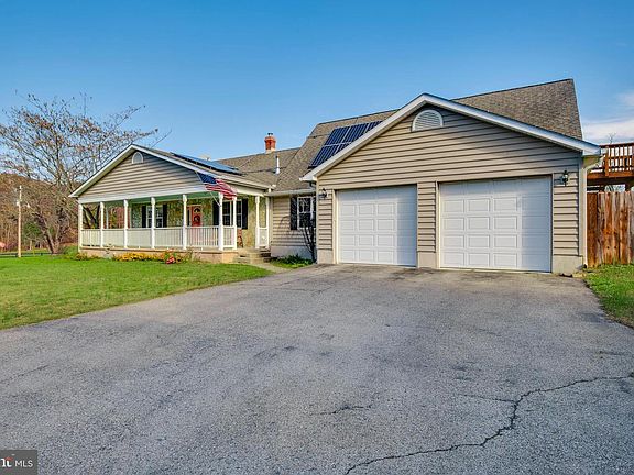 Taking you HOME down Country Roads to this beautiful cape cod nestled on a one acre lot with a charming wrap-around front porch. Enjoy scenic backyard views from an inviting in-ground pool (pool pump system replaced in 2018) with a poolside pool house and a generous sundeck. The back deck and pool area are the perfect spots for endless summer time entertainment. This expanded and remodeled home boasts four bedrooms and three and one half bathrooms. The master bedroom and bathroom are located on the main floor of the home. Eat-in kitchen, a separate dining room, two family rooms and a HUGE upstairs great room with a bar and pool table that convey with the home. The large unfinished basement offers future expansion possibility and tons of storage space. There is an attached two car garage and a 30 x 32 detached garage that includes a HUGE work shop area. The detached garage also has a single garage door for parking. There are two separate driveways on each side of the home. New A/C replaced in 2020. Solar panels are leased with Sun Run and will transfer to new owner. AS IS sale.