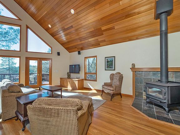 This property has it all. Beautiful 2 story custom-built home,swimming pool,additional 3 car garage,awesome pond,distant views,10 gorgeous acres,fruit and nut trees and it is gated.The open floor plan with fabulous cathedral wood ceilings plus floor to ceiling windows,includes an amazing kitchen with granite counters and stainless appliances,dining bar,large dining area and wonderful living room. All this opens to a large deck to enjoy the sunsets and watch the wildlife on the pond.There are 2 bedrooms,one with private entrance,laundry and bath on this floor as well.Upstairs is a fun loft with great views snuggled next to the master bedroom.The master has cathedral wood ceilings,ample space for large furniture,a fireplace,window seat and private balcony.The bathroom has double sinks, soaking tub and a gorgeous shower.The sellers took great care in building this spectacular home.The windows are wood cased,the doors are solid and most of the flooring is wood. Don't miss this beauty!