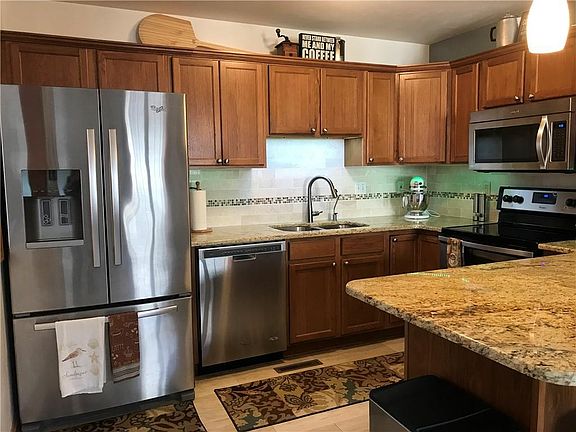 Gorgeous end unit condo! Beautiful kitchen with granite countertops & high end SS appliances. All new modern bathroom vanities. LED vanity mirror lights with remote for changing colors. New light fixtures throughout. Nice & bright open floor plan DR could be 3rd bedroom or office with patio doors to the deck. Lower level with family rm, bedroom, & full bath with walk in shower. Perfect for guests HOA includes water, sewer, garbage, snow removal and landscaping.