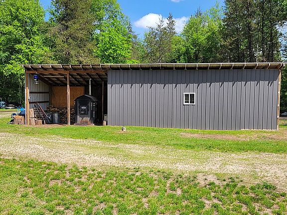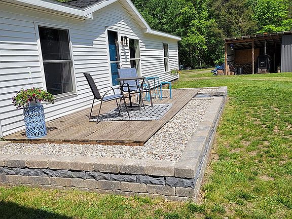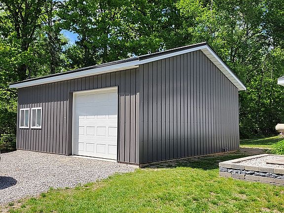 Peaceful countryside living awaits you in this charming 1,200 sq. ft., 3-bedroom, 2-bathroom home, set on 2 acres of partially wooded land. The neutral color interior of the open floor plan features a striking wooden beam, plenty of kitchen cabinetry and countertops and stainless-steel appliances. You’ll be cozy in any weather using your recently installed furnace (2021) and your choice of central air conditioning, outdoor wood boiler, or propane heat. Recent exterior upgrades include a new roof (2017), vinyl siding (2024), septic system and drain field (2022), and professional landscaping that features a 42 ft. x 15 ft. paver patio oasis with an outdoor kitchen area featuring granite countertops, a Kamado Joe grill, a Barrel Smoker, ambient landscape lighting, patio furniture and room for a hot tub. The fenced in backyard includes an above-ground pool and trampoline. Outside there is ample storage for all your needs including a 24’ x 26’ garage with a finished, heated room, perfect for your hobbies or an office. There is also a 22’ x 46’. pole building, and 3 storage sheds. This house has everything you need to start your ideal Summer and is move-in ready. This home will not last long!