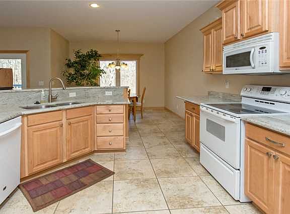 One of a kind walk-out ranch nestled on rare lot backing up to woods and creek. Open floor plan with 9’ ceilings is great for entertaining. Great room with fireplace opens to eat-in kitchen with breakfast bar perfect for casual dinners or a quick snack. Ample maple cabinets and granite counters make this kitchen perfect for the cooking enthusiast. 1st floor laundry is another added plus of this house. Master suite with treyed ceiling, tiled shower, bubble tub, double vanity & dual walk-in closets. 2 additional bedrooms centrally located around full bath. Finished walkout lower level offers large rec room, 4th bedroom, full bath, and bonus room that could be office, gym or 5th bedroom. Take in the breath taking views while sitting on the patio or deck overlooking beautiful landscaped yard with irrigation system. 3 car attached garage ensures you have plenty of room for tools, toys, and cars. Welcome home to Pleasant Hill!