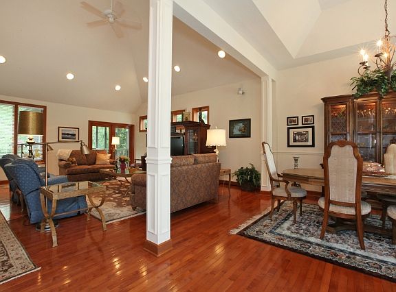 Lovingly cared for and maintained! Open floor plan features gorgeous Cherry hardwood floors, high ceilings & lots of natural light! Corian counters with undermount sink, tile floor, pantry, and lots of cabinets complete with a custom crown finish in the kitchen. Bright eating area with tile floor. Convenient first floor laundry with counter space & cabinets. Spacious first floor master with huge dedicated full bath! Ample sized bedrooms with double closets and a loft on the upper level. Lots of storage room and unlimited potential for the large lower level. Relax and enjoy the serene setting from the screened porch or paver patio. Additional updates include: heat rope for gutter, roof, furnace/ac, whole house carbon water filter, remodeled master bath & laundry room.