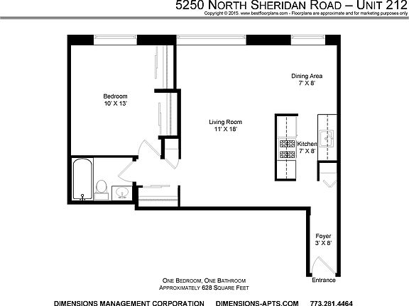 This beautiful Northwest sunny west facing unit has several windows allowing for natural light. The L- shaped kitchen features light maple cabinets and connects to a separate dinning area. Gleaming wood flooring gives the unit a clean finish and there is plenty of closet space for storage. Bus lines run directly in front of the property and near the red line. You are blocks from Lake Michigan, beautiful parks, trails, beaches, & the new Marianos supermarket! No Security Deposit! To view, please contact: Dimensions Management our rental agent Mike Hanson @ 773.580.2369. Heat, water and gas included.