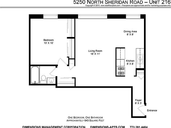 Completely remodeled 1 bedroom in Edgewater Beach has kitchen with granite counter-tops, stainless steel appliances including dishwasher and microwave. The unit also features a custom tiled bathroom, track lighting, ceiling fans, built in AC, tons of closets and beautiful hardwood floors Close proximity to Mariano's grocery store, Foster Beach, shopping and entertainment. Express buses in front of the building and 1 block to the Red Line Berwyn Stop. Parking option available. Heat, water & cooking gas included with laundry & bike storage in the building. To view visit our website dimensions-apts.