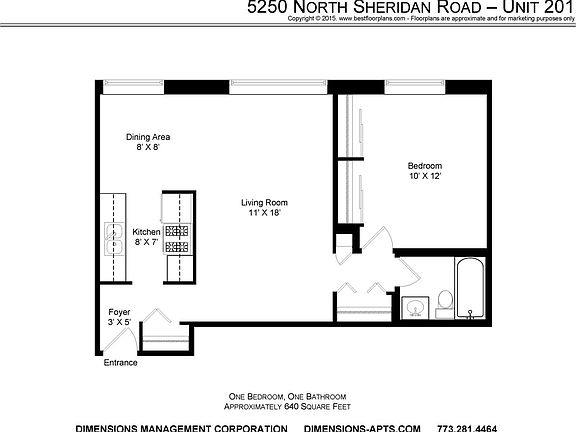Completely remodeled 1 bedroom in Edgewater Beach has a kitchen with granite counter-tops, stainless steel appliances including dishwasher and microwave. The unit also features a custom tiled bathroom, track lighting, ceiling fans, built in AC, tons of closets and beautiful hardwood floors. Close proximity to Marianos grocery store, Foster Beach, shopping and entertainment. Express buses in front of the building and a short walk to the Red Line Berwyn Stop. Parking option available. Heat, water and cooking gas included with laundry & bike storage in the building. To view visit our website dimensions-apts.