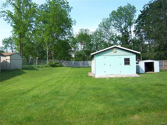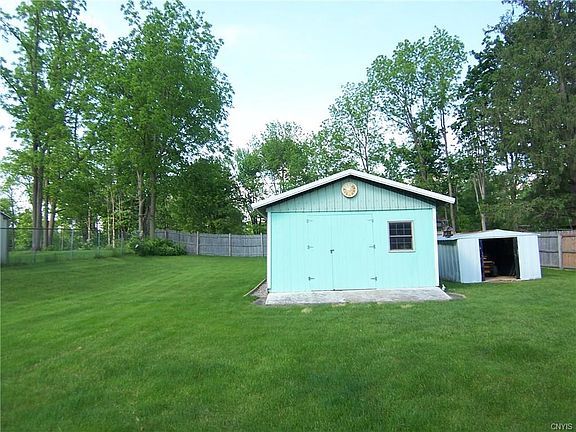 A great starter or retirement home! This Ranch offers eat-in kitchen with oak cabinets, solid surface counters, stove, refrigerator and microwave, living room, 2 bedrooms with double closets, a full renovated bath, attached garage, enclosed porch, shed plus a detached workshop with electric and concrete floor! Central air. Hardwood floors under carpeting. Fenced yard too!