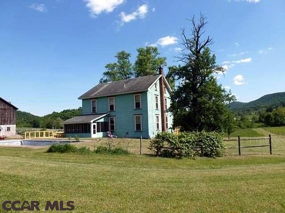 Diverse terrain and sweeping views with easy access to I-99. This property includes a solid 1879 farmhouse with original wood floors and details. Outbuildings include a sound barn, small barn, and garage. There is a small stream that runs through the property and river frontage along the Little Juniata River. Also, a ridgeline trail leads to a unique rock outcropping bordering the well photographed portion of Norfolk Southern rail line. This would be an excellent farm for raising beef, sheep, goats, horses, or for those who would like to live in an original 1800's home. http://www.centralparuralproperty.com/property/the-wallace-farm/