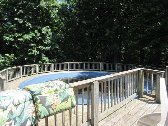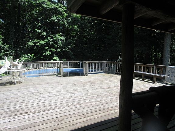 3dedroom 2 bath log home w/attached 2 car garage and a large wooden deck on the rear of the house opening up to a nice sized aboveground pool in a 5+acre secluded valley. property also includes a 3car detached garage, a large shelter house with concrete floor and a beautiful stocked lake. Property is in need of TLC AND IS BEING SOLD AS IS