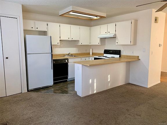 Pick your new carpet! End-unit in Littleton's Hickory Place Condos ready for a new homeowner to make it their own! Open layout with huge kitchen, ample storage, fireplace...and the patio is large, faces west where instead of looking at neighbors, your looking at Cornerstone Park! Washer and dryer stay with the unit too. The location is tough to beat with easy access to Santa Fe and I-25 via Belleview. It's also less than a 5 minute drive to AMAZING Downtown Littleton! Low HOA & taxes, great community pool, and the park is right outside the front door. Can easily be turned into a true 1 bedroom.
