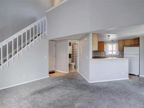 A unique top floor, end unit at a great location! The complex backs to Big Dry Creek trail and Progress Park. Close to the downtown Littleton light rail. Open floor plan, 2nd floor bedroom, vaulted ceilings, a balcony overlooking the pool and Big Dry Creek Open Space. Newer interior painting! The unit does not have common walls. One designated covered parking space.