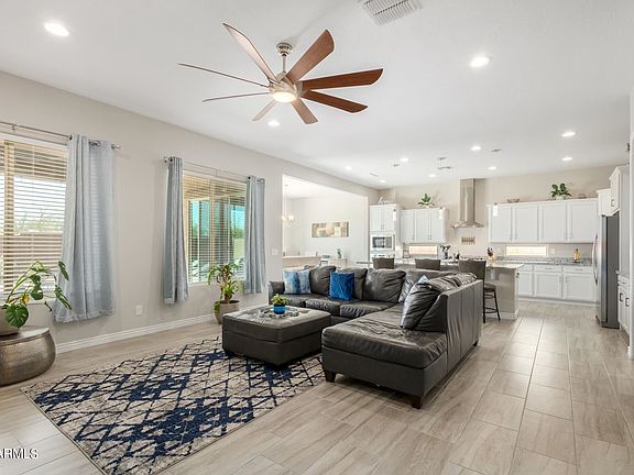 Are you looking for the perfect home in the community of Estates at Eastmark You've found it! Great open floor plan with inviting living room, formal dining, and 4 sizable bedrooms. Practice your cooking skills in the immaculate kitchen showcasing granite counters, SS appliances, popular white cabinets, an island w/breakfast bar, and a walk-in pantry. The delightful primary suite offers a beautiful bathroom with dual vanities, a rain shower, & a large walk-in closet. Low-maintenance backyard is ready for fun summer gatherings with its covered patio, paved areas, & sparkling blue pool w/water jets. Your search is over! Book a private showing today!