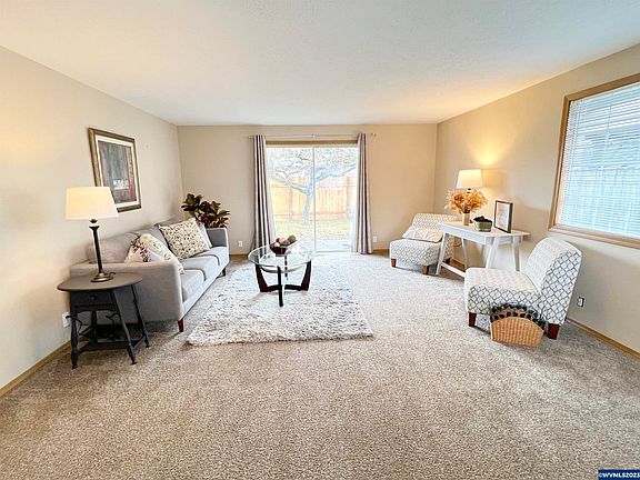 OPEN HOUSE SAT 12/8 1:00 -3:00 pm. Move in ready 3 BD, 2 BA home in wonderful quiet neighborhood. Open floor plan, large living room w/dining room. Kitchen has large eating area, w/loads counter & cabinet storage, pantry, range, fridge, breakfast bar & eating area. Large master w/separate bath & walk in closet. 2 generous bedrooms w/closet storage. Interior laundry, gas forced heat & AC. 2 car GA, fenced backyard w/patio. Easy I-5 access.