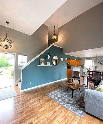 If you want MOVE IN READY on a gorgeous private lot perfect for entertaining this is it! This meticulous home sits on one of the largest lots in the neighborhood with a fire pit area, dog run, shed, garden area and a massive stained concrete patio with no neighbors to the back! Walk into 17' ceilings, laminate wood floors throughout the main with gas fireplace and built-ins. The kitchen opens to the dining area and offers stainless steel appliances, updated cabinetry, counter tops and recessed lighting. The upstairs offers a master bedroom with en-suite and walk in closet, two additional bedrooms and full bath. The unfinished basement offers the opportunity to make it your own and would be a great rec space, workout space or man/woman cave. This home also has A/C! Don't miss this extremely well cared for home.