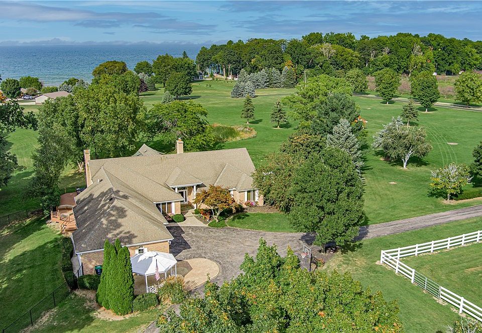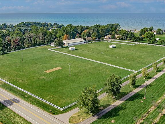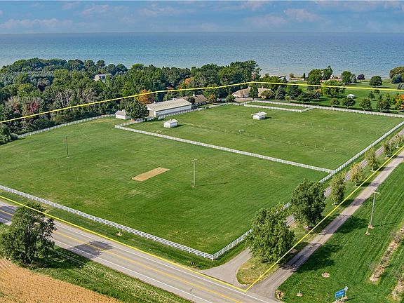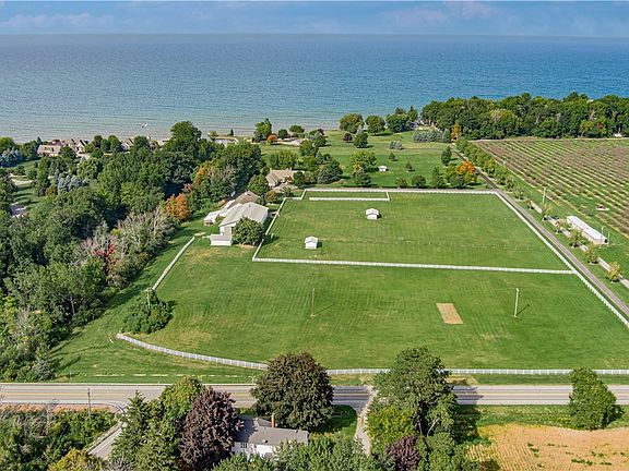 Pristine and meticulously maintained ranch on a 20+ acre property with gorgeous views of Lake Ontario. Open floor plan, custom kitchen w/ Granite Counters, center gathering island, inviting large eat in area w/ fireplace. Oversized windows! Family room with fireplace. Den with custom built ins (4th bedroom) Perfect for home office! Amazing great room with skylights, cathedral ceilings and fireplace. 3/4 bedrooms. Primary ensuite w/ 2 walk in closets, spa bath. Home includes mudroom, 1st floor laundry and basement with walk out and finished room. 3 car attached garage. Expansive deck for entertaining. Magnificent state of the art 7,200 sq foot lighted indoor area (w/ soft footing). 13 stall barn w/ viewing room, bathroom, tack room, wash rack, full second story walk up loft. 10 acres w/ separate paddocks & vinyl fencing. 4 loafing sheds. 2,400 additional sq foot heated "work shop" area w/ 2 double garage doors. Fenced in dog area with heated dog kennel! Well appointed with many additional uses...winery, wedding venue, brewery or subdivide or enjoy as is.