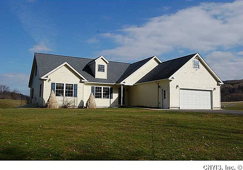 Beautiful newer custom ranch home. Walk-up attic and full basement storage offers space for more rooms. Open floor plan with many special features: master BR suite, propane fireplace, cable TV and satellite, high speed internet, all kitchen appliances including double wall oven, washer and dryer. security system, all window treatments convey, built-in generator, reverse osmosis water filter, poured concrete foundation, 2 car attached garage with door opener, paved drive, southeast facing deck, 5 acres, partially open yard, about an acre of invisible fence, some woods, stream and waterfall.