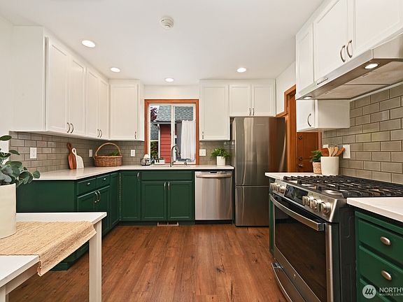 This home will surprise you! Fully fenced and backs to Camp Long. Extensive updates and upgrades. 2025: Back yard fence, sewer line repair (video available); 2024: Triple pane windows, interior paint; 2022: Main floor flooring, kitchen update (appliances, hood, countertop); 2019: Heat pump, washer/dryer; 2018: Bathroom refresh, rebuilt front porch; 2017: Tankless water heater, rebuilt back porch. 2016: Roof. Tastefully updated and lovingly maintained home is ready for you to move right in. Detached 1 car garage, plus driveway parking. Pre-Inspection available upon request.