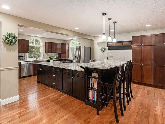 Open house May 7th, 2-4. Beautiful estate sized lot with mature landscaping providing uncommon privacy. The updated kitchen with granite, glass tile back splash, gas cook top, double oven, farm sink, and breakfast bar is open to the dining room and family room with wood burning fireplace. A separate living room includes French doors and could serve as a main level office. Perfect for a guest/in-law, the main level bedroom sits next to the full bath. Pristine wood floors. Upstairs, the primary suite is sure to please with an updated bath, huge walk-in closet with custom organizer, and a separate room for office/workout. There are 3 additional large bedrooms and an updated hall bath. The lower level includes 2 large finished rooms, 1 with a wood burning fireplace. Newer roof, windows, HVAC!