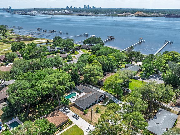 Welcome home to this beautifully updated single-story gem just three homes from the river, tucked away on a quiet cul-de-sac street! Offering an ideal blend of charm & modern updates. This spacious home features a formal living room, dining room & separate family room overlooking a screened patio & sparkling pool - perfect for entertaining or relaxing year-round. The updated kitchen boasts granite counters & plenty of cabinetry, while fresh interior paint, wood floors, brand-new carpet, & updated baths make this home truly move-in ready! A large flex/bonus room with a cozy fireplace provides endless possibilities- think game room, home theater, or ultimate hangout space. You'll love being a short walk or bike ride to Blue Cypress Community Center, where you can enjoy golf, swimming, basketball, pickleball, tennis, & much more. Only 5mins to Arlington Lions Club & boat ramp. Don't miss the opportunity to live in a prime location with river breezes & fantastic amenities at your door! Only 5 mins to JU College, 15 minutes to Downtown and Stadiums, or 20 minutes to Mayport Naval Base!