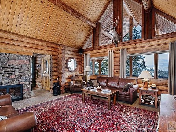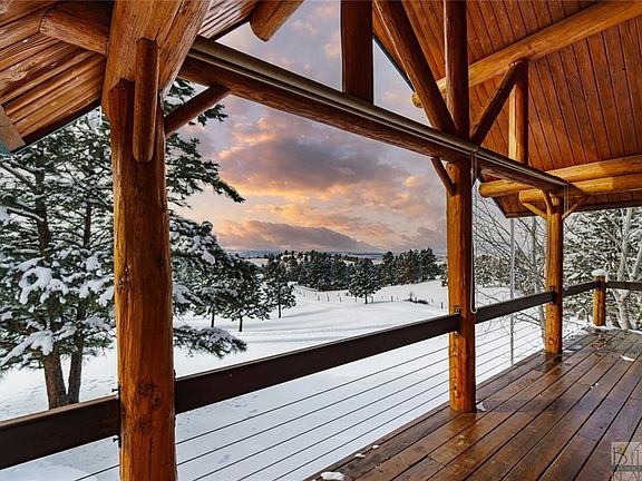 Stunning Country Retreat! Log home estate nestled on 32+acres offers breathtaking views of 4 mountain ranges & evening city lights. 2,000 sq ft of decking provide spectacular views, outdoor grill & entertainment areas. Rolling hills, barn, open grass meadows & 4 separate pastures make this a horse lovers paradise. Soaring great room w/two-sided rock fireplace, cozy den, open kitchen & dining room. Main floor continues w/master suite, bedroom & bath. Lower level includes impressive master suite retreat w/reading area, gas fireplace & private patio +hot tub. Two guest bedrooms (non-egress), bath, laundry & relaxing living w/wood stove complete lower level. Open loft tops the grand views as an additional retreat area or guest space. Desired oversized 3 car garage/shop features an upper-level custom entertaining space. Abundant wildlife and trails all while being close to downtown Billings.