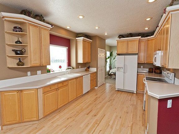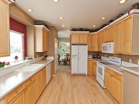 Relax on your covered stamped concrete patio with no rear neighbors. East facing back yard. New exterior paint, new carpet w/commercial pad, 2010 XR95 Trane furnace, huge 25x33 garage, pull down ladder to stand-up storage, 9 foot ceilings. Main level master suite w/ 10x11.5 master bath, soaking tub & separate shower. Kitchen features maple cabinetry w/ crown molding, glass top range & range top microwave. Seller states they have the best neighbors in the world & hate to leave them.