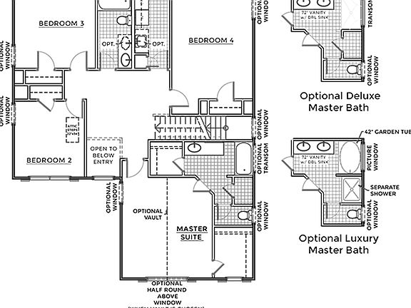 This home has a two-story foyer, which leads into the dining area.  Downstairs you will find a wonderfully open great room with the option to add a gas log fireplace. Open to the great room and the breakfast area is the fully functional Kitchen. The kitchen has plenty of workspace, even more when you elect to add the optional island. It also has tons of storage augmented by a large pantry. It also has open access to the formal dining room.  The optional chef's package includes a gas cook top and a hood, a built in oven with a microwave above. Upstairs the master suite has a large walk-in closet with an entry off the bedroom, and another walk-in closet accessible from the master bathroom. The bathroom can be built with a double sink vanity, and either a large walk in shower and oversized linen closet, or a separate shower and tub. Bedrooms two, three, and four are also located upstairs. Joining them is a second full bathroom and the laundry room. This home has a 2-car garage.