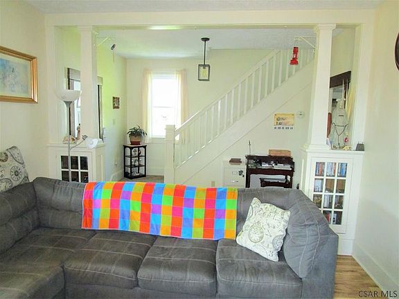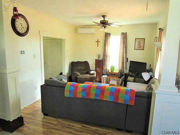 Charming 2+ story home in Penn Cambria School District. 1st floor features foyer with open staircase. Laminate flooring & fan in both living room & dining room.Kitchen has vinyl flooring & includes stove. Carpeted laundry room. 2nd floor has 3 carpeted bedrooms & closets. Updated full bath with tub/shower, closet & vanity. Upper level has bonus room. Full unfinished basement. Covered porch. Attached 1 car garage. Heat pump works air conditioning for home. Ask about a one year home warranty. Call today to schedule a tour!