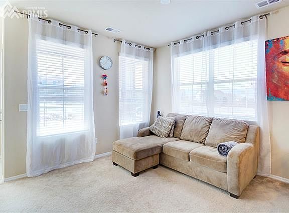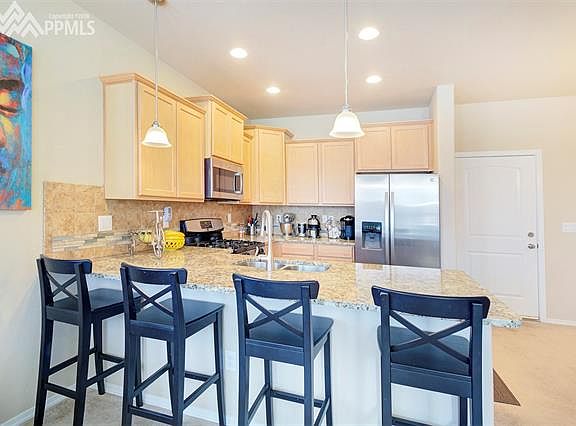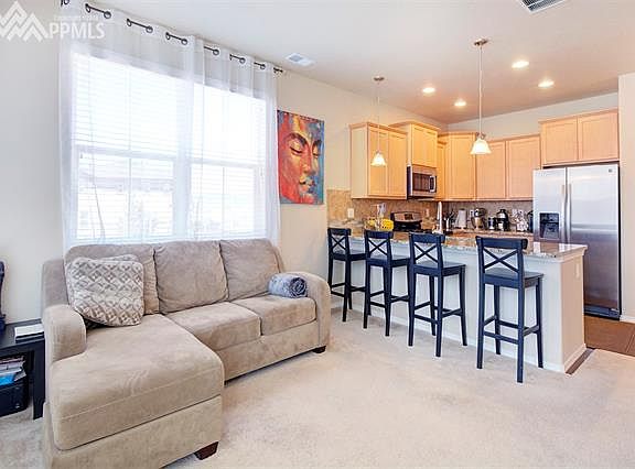 Beautiful end unit townhouse located close to the powers corridor with fantastic views of Pikes Peak!This home includes a eat in kitchen with granite counter tops, a gas range & stainless steel appliances.The living room has fantastic natural light with plenty of windows & a gas burning fireplace.Upstairs you will find 3 bedrooms including the master with an adjoining bathroom and a large closet.The 2 additional bedrooms have an ample amount of space and a full bath.The laundry is conveniently located upstairs!