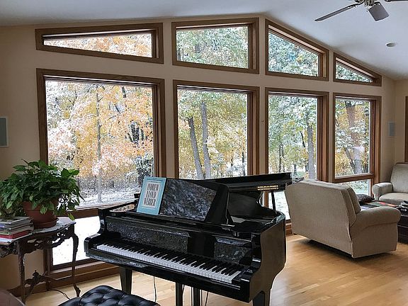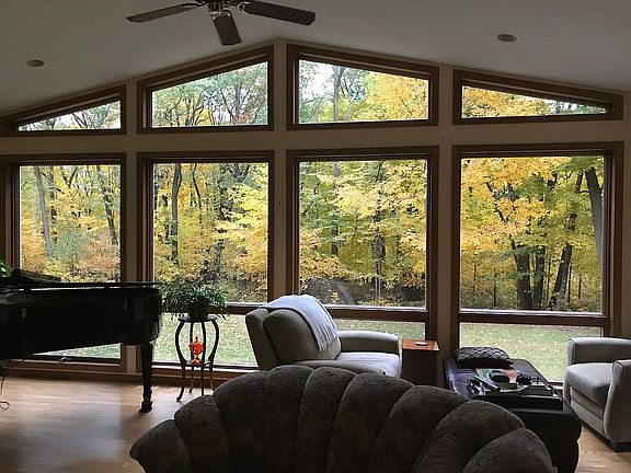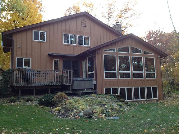 Approx 4.5 wooded acres, 2 story home, attached 2 & 1/2 car garage and detached 2 & 1/2 garage. 4 bedrooms with a potential 5th (used as an office currently), large master bedroom with huge walk in closet and master bath. Granite counter tops, wood/tile floors, solid core six panel doors, beautiful view, new composite deck (with hot tub), black top driveway and much more. One mile from Oxbow park. Finished basement includes a wall of look out windows. Professionally installed whole house alarm system. Two fireplaces - one gas and one wood (gas is 2 yrs old, wood has had chimney updated to SS dual wall) - house can be heated with fireplaces. Newer Anderson windows through most of the house. Carpet allowance available.
