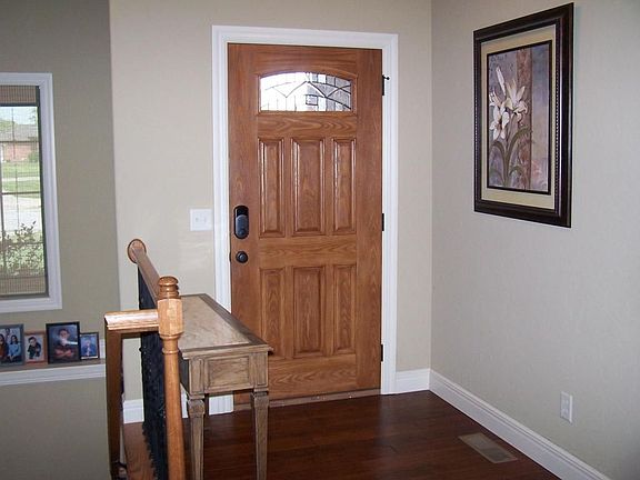 Beautiful walk-out basement home in desirable Walker Ridge Subdivision - One owner- Built in 2010- Brick/Stone/Vinyl- 3- Car Garage- Wood fenced backyard- In-Ground Sprinkler System in front and side yards- Patio plus nice covered Deck off of Great Room & Eating Area with steps down to yard- High Ceilings, Gorgeous Wood Floors, Whirlpool tub, Five Bedrooms plus large storage room in basement (is wired/switches, outlets, window, door, & place for closet to easily finish for 6th bdrm)-Wet Bar & huge Family/Rec Room for Pool Table- John Deere Room- Sellers finished more sq footage from builder's plan so builder finished to approx. 3400 sq. ft. for them - so larger than tax record states- HOA $55.00 a year-Security System-$5K credit to buyer at closing with acceptable offer-